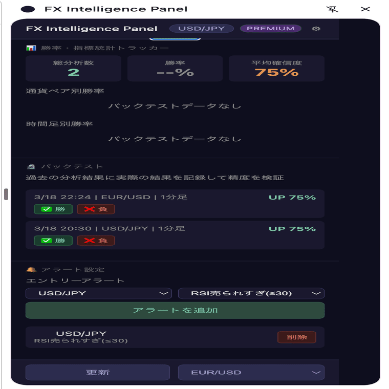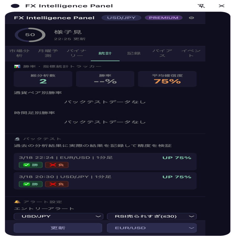 【大型アップデート】FX Intelligence Panel v1.2 リリース!ダウ理論・バイナリー分析・統計トラッカーなど大幅強化