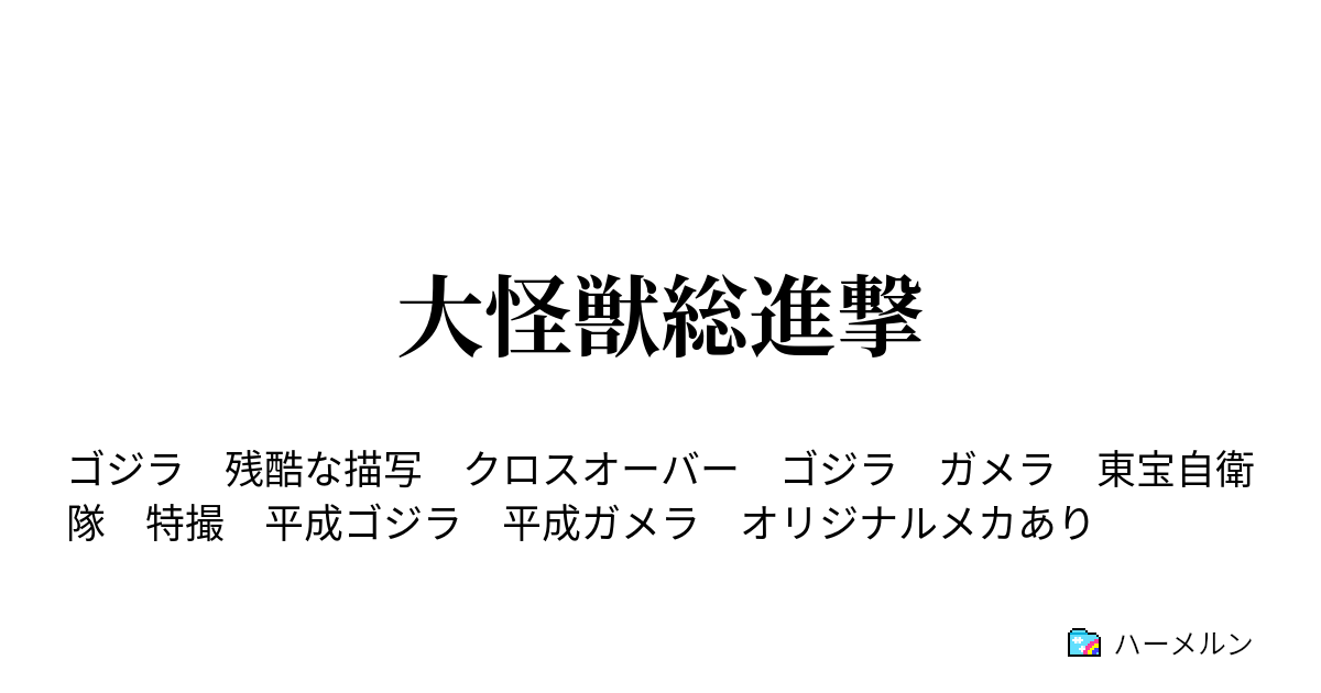この小説はシンフォギアのガメラコラボとpixivで連載しているBrackRXさんの小説を始めとしたゴジラの小説を見て書きたくなったもので、ゴジラvsデストロイアの後の平成ゴジラシリーズの世界でガメラ大怪獣空中決戦の出来事が起こる話です。また、今小説は平成ゴジラシリーズに出た各映画の主要人物が大集合するオールスターズ的なものでもあります。
