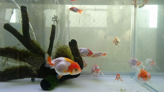 いよいよベランダ水槽に金魚を