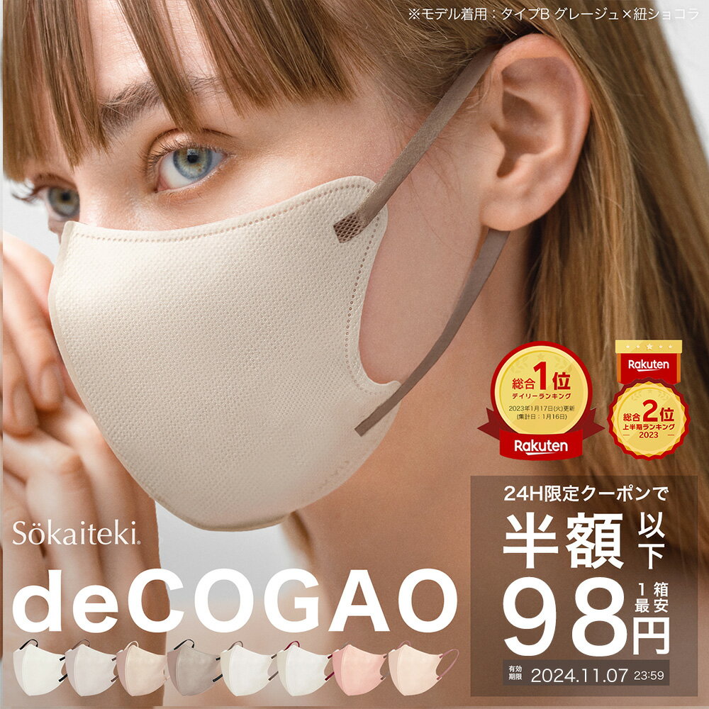 本日限りSALE【 クーポンで最安1点98円 】11/7 23:59まで マスク 不織布 立体 子供 3Dマスク 立体マスク 不織布マスク 小顔マスク 血色マスク バイカラーマスク 冷感マスク カラーマスク くちばし 小顔効果 オシャレ 冷感 Sokaiteki deCOGAO デコガオ 1箱 18枚入楽天市場${EVENT_LABEL_01_TEXT}