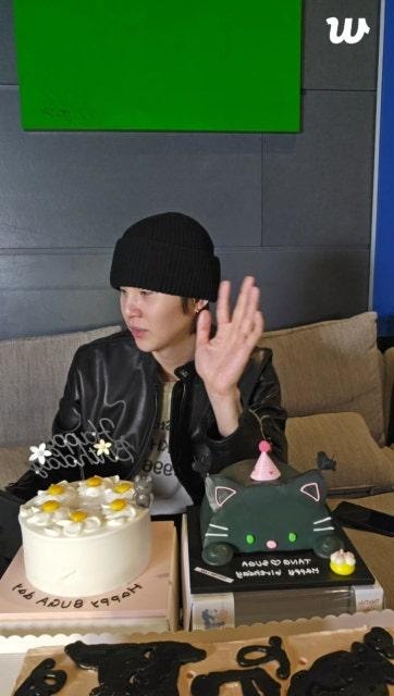 大勢のスタッフさんに祝ってもらって、そういうの苦手~と言いつつニヤけてしまうユンギくん😂↓