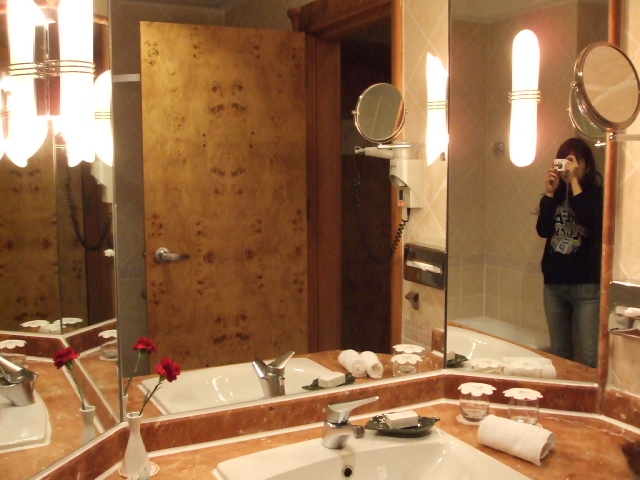 中庭のプールがライトアップされているのが見えて素敵でした。