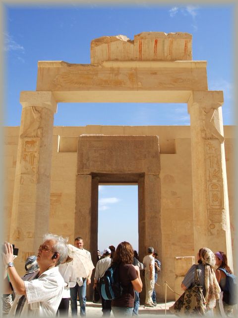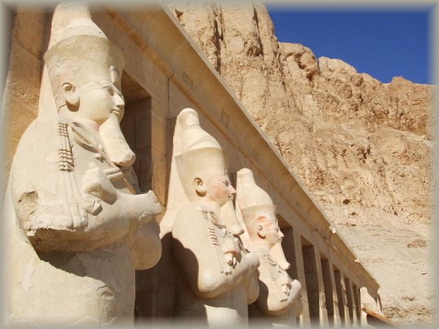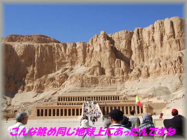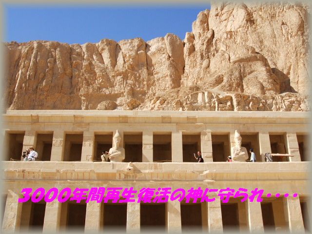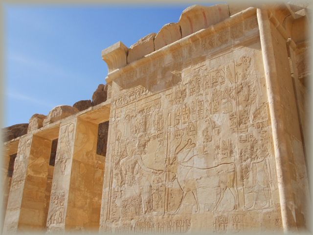 岩壁の傾斜を利用して造られている古代エジプト建築の傑作のひとつ。