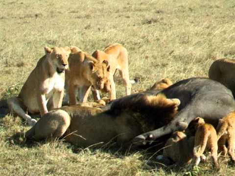 無線でライオンのfamilyが獲物をしとめたという情報が・・・