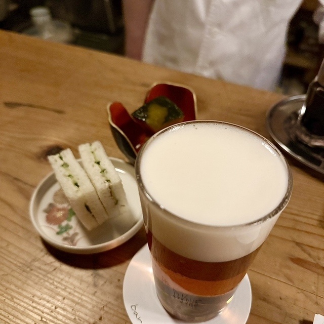さて待望の居酒屋巡り。細裏路地に佇む古民家の二階「手盃 蛮殻(てっぱ ばんから)」。太田さんが全幅の信頼を寄せる店主・大野尚人さんが手掛けるお店です。まずは愛知の地酒「長珍」の燗で。お通しは、花わさび岩もずく酢と煮蛤の二品。ひと手間をかけながらも素材の持ち味を大切にした旨味が絶妙です。さらに、のびると鶏ハツニラオイル和え、うなぎぬか漬けを注文。その独創的な料理の掛合わせに、太田さん、さらに惚れ込んだよう。長居したくなるカウンター席で、大野さんとの会話も弾みました。