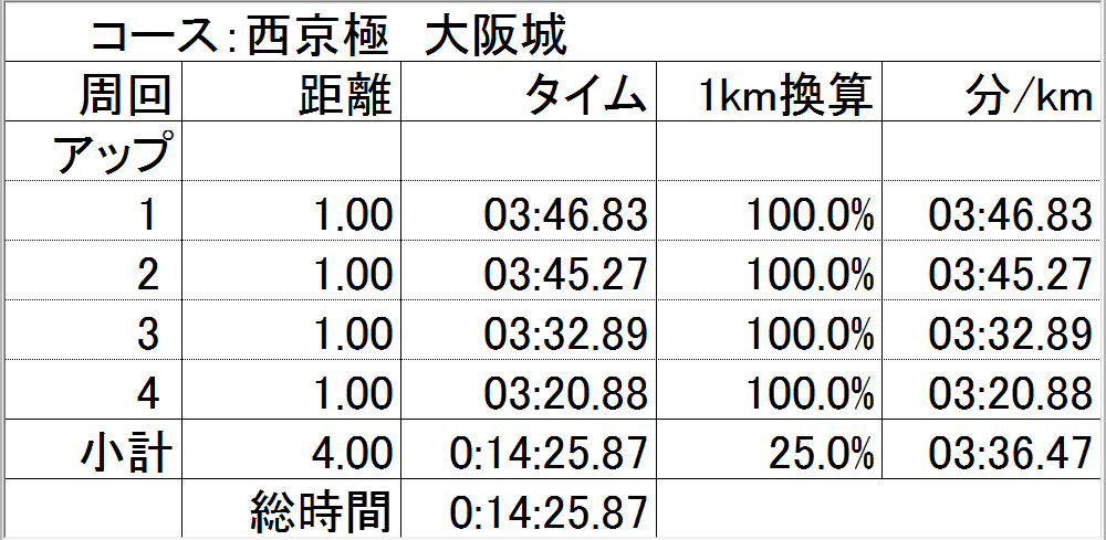 4本目で3′30″を切れたので、気持ちよかった!