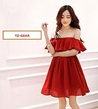 2014夏新品、赤いセクシーを包む胸の砂浜スカートフリル一字領ワンピース、ベアトップリゾートス.../TZ-GEAR