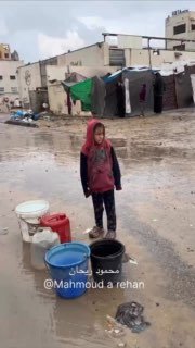 ガザの子供たちは、水を確保するために日々の困難に立ち向かっています。この写真は、人道危機をさらに悪化させる追加の負担となる雨水を得るための移動の途中の子供たちの姿を切り取っています。