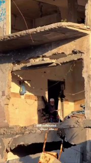 彼の家の遺跡の上に、彼は不平を言うのではなく、天に向かってクルアーンの節を朗読しています。ラマダンの期間に、彼は私たちに、家は崩れても信仰は破れないことを教えてくれます。
