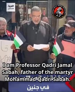 殉教者の父、カドリ・ジャマル・サバ教授は、ジェニンで開かれたデモで演説し、(注)殉教者、負傷者、囚人の家族の給与と年金の回復を要求し、「イスラエル」による囚人の処刑を認める法律に反対しました。