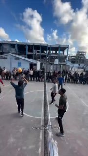 焼けた学校の瓦礫の中、そして強靭なジャバリア難民キャンプの中心で、ガザの若者たちはバレーボールで過酷な現実に立ち向かっています。これらのシーンは生命と希望に満ちており、私たちの人々が降伏を知らず、破壊の深みからも喜びを生み出し続けていることをもう一度証明しています。