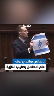 ポーランドの野党政党の政治家は、議会で六角星ではなく、十字記号が描かれた占領国の旗を掲げて次のように述べた。「イスラエルは新しい第三帝国であり、集団虐殺を行っており、これがイスラエルの旗だようだ。」