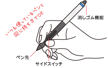 ペンをひっくり返してすぐに消せる、かんたん消しゴム機能が搭載されています。