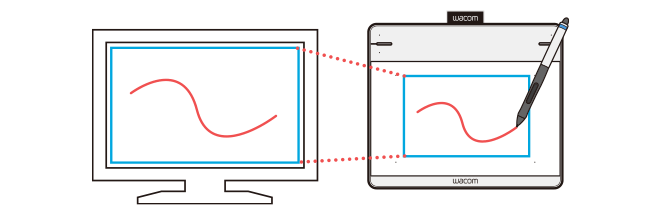 タブレットの読み取り面とパソコンモニターは1:1で対応しています。