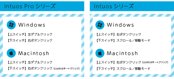 タブレット上で少しペン先を浮かした状態でスイッチを押します。