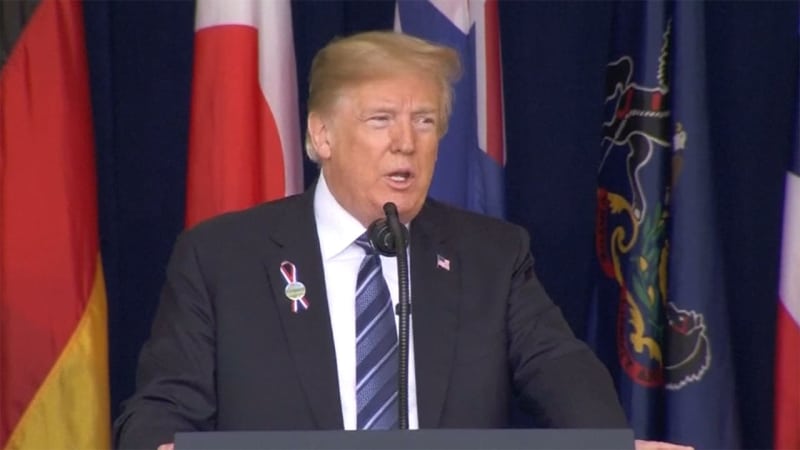 9/11から17年、トランプ米大統領が墜落跡地で演説