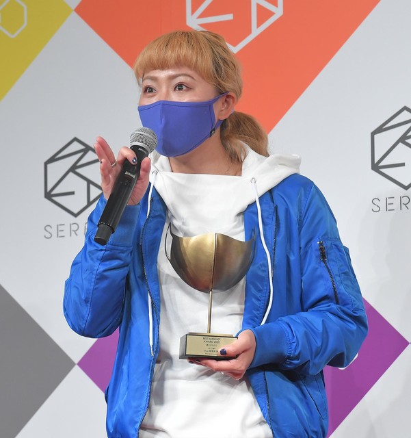トロフィーを授与された丸山は「普段はマスクを自分が選んでいるけど、マスクから