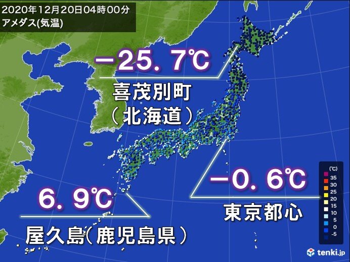 - 北海道の喜茂別町で、全国で今季初めてマイナス25℃以下を観測した。