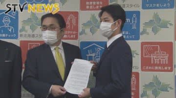 23日午後、道議会の自民党会派から新型コロナ対策に関する申し入れを受けた鈴木