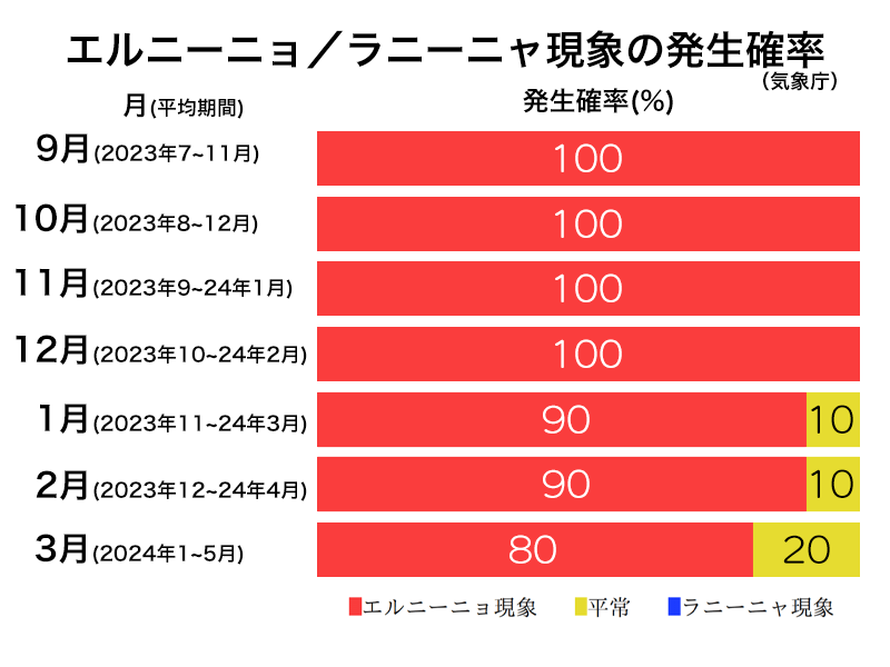 2月が90%、3月が80%で、来年の春にかけてエルニーニョ現象が