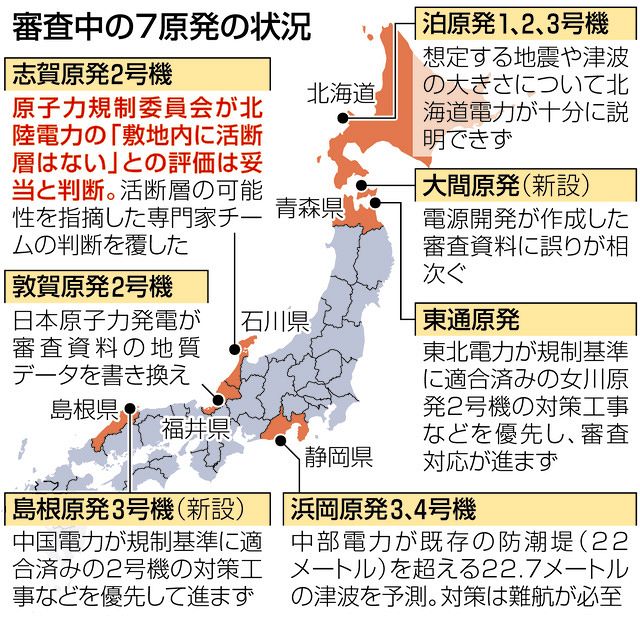 基本的な事故対策の審査が計7原発10基で続く。うち、日本