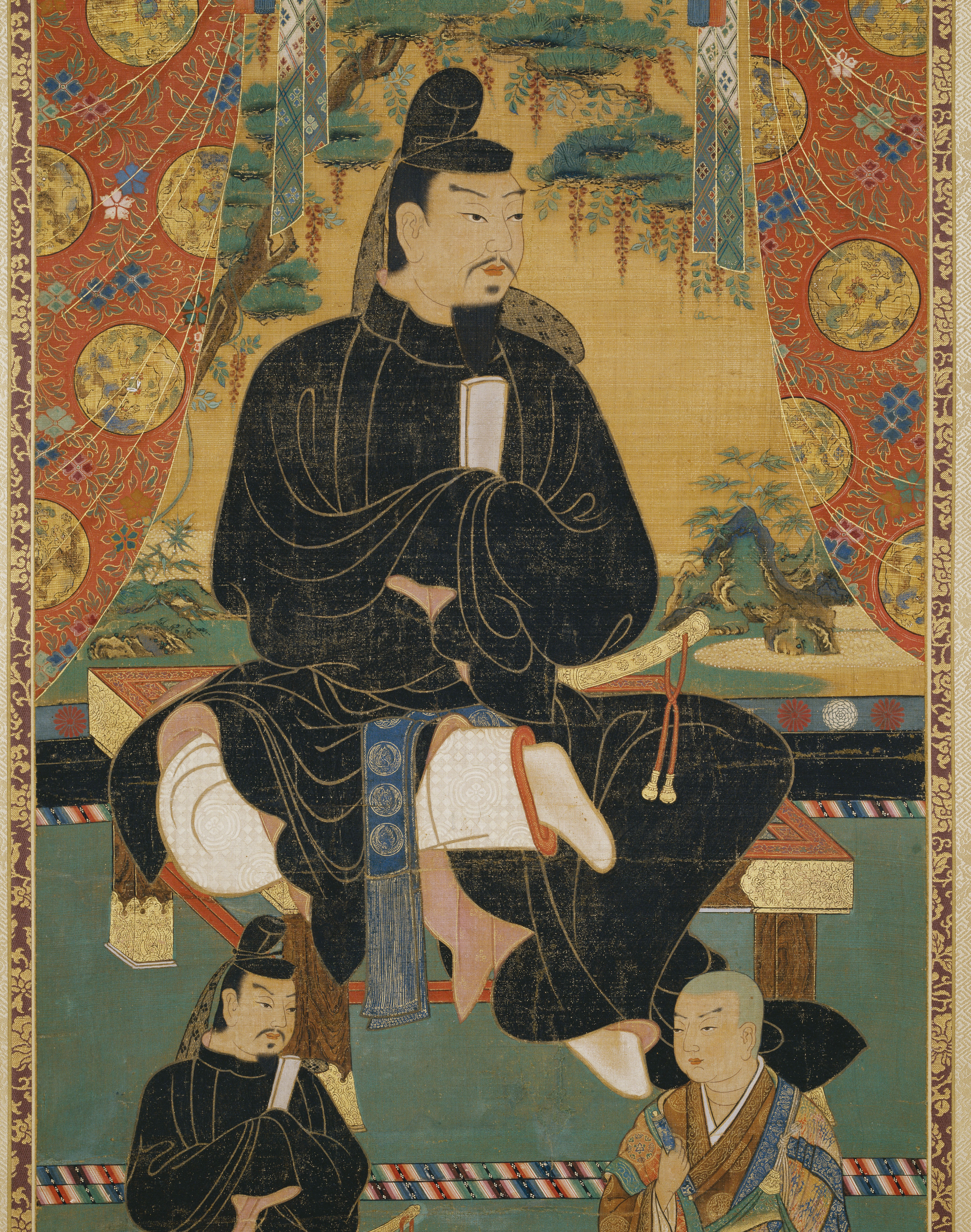 奥のケースに藤原鎌足像(掛け軸)