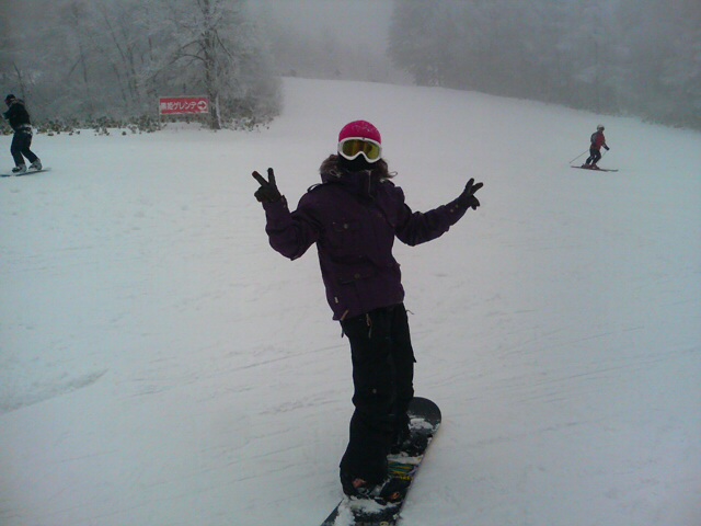 大注目!!!!!!!きましたぁーーー♪蔵王は明日パウダーだべっす!!今の時点で下までばふばふ。このまま降り続けば・・・はい、みなさんこぞって来てください☆まだ駐車場もタダみたいですよー。ぁ、ちなみにコレ「RIDE」のウェアです。かっこいいのだよ!板だけじゃないんですよー。全身サポートしてもらってます!!!