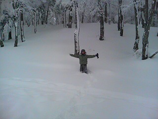 去年のウェア(上、黄緑・下、灰色)でメットかぶってます。