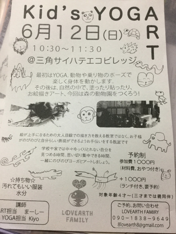 今週の日曜日はサイハテにてワークショップ初め。天草にてやっていたお天氣ワークショップのサイハテ版、子どもとヨーガとアートして樂しみます。今回は森の動物園作り!Let's YogArt!