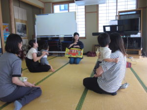 もう10年も前のことですが、当時と同じ畳の和室に、お子さんとお母さんたちがおられるのを見ると、思い出がよみがえります。なつかしいな~。