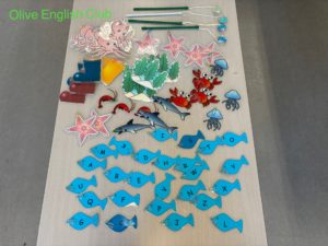 毎年、夏に大活躍する"fishing game"のセット、魚にはアルファベットがついています。