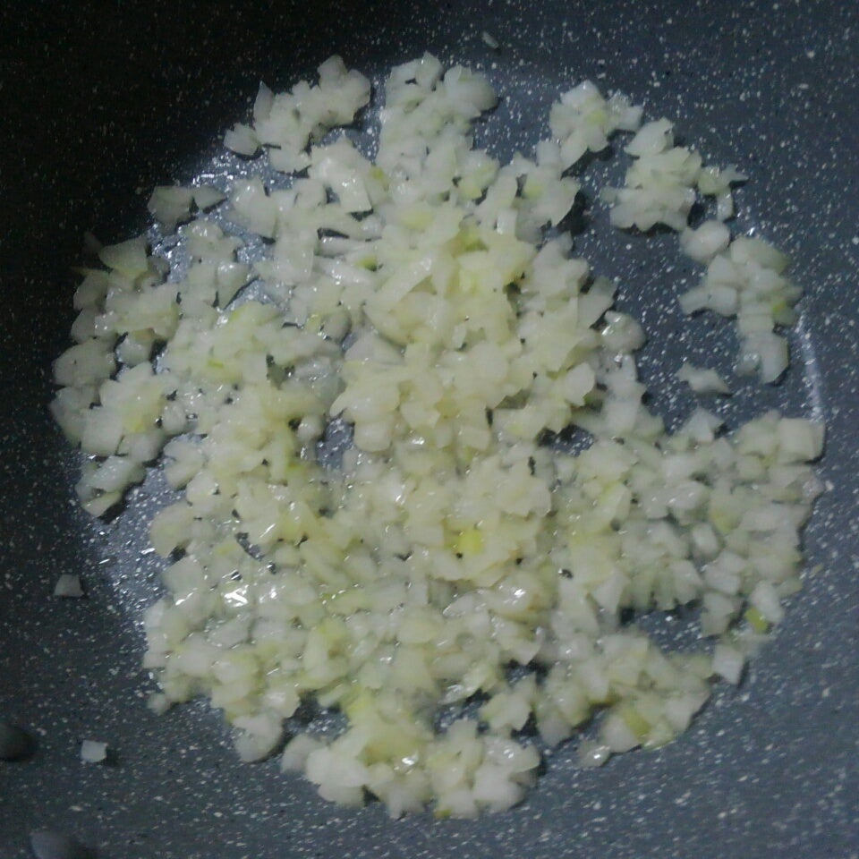 フライパンにオリ―ブオイルを入れ、中火で、玉ねぎを炒める。