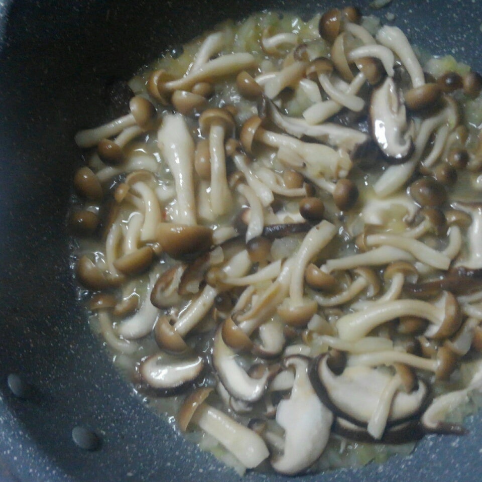 しいたけ、シメジを加え、炒める。