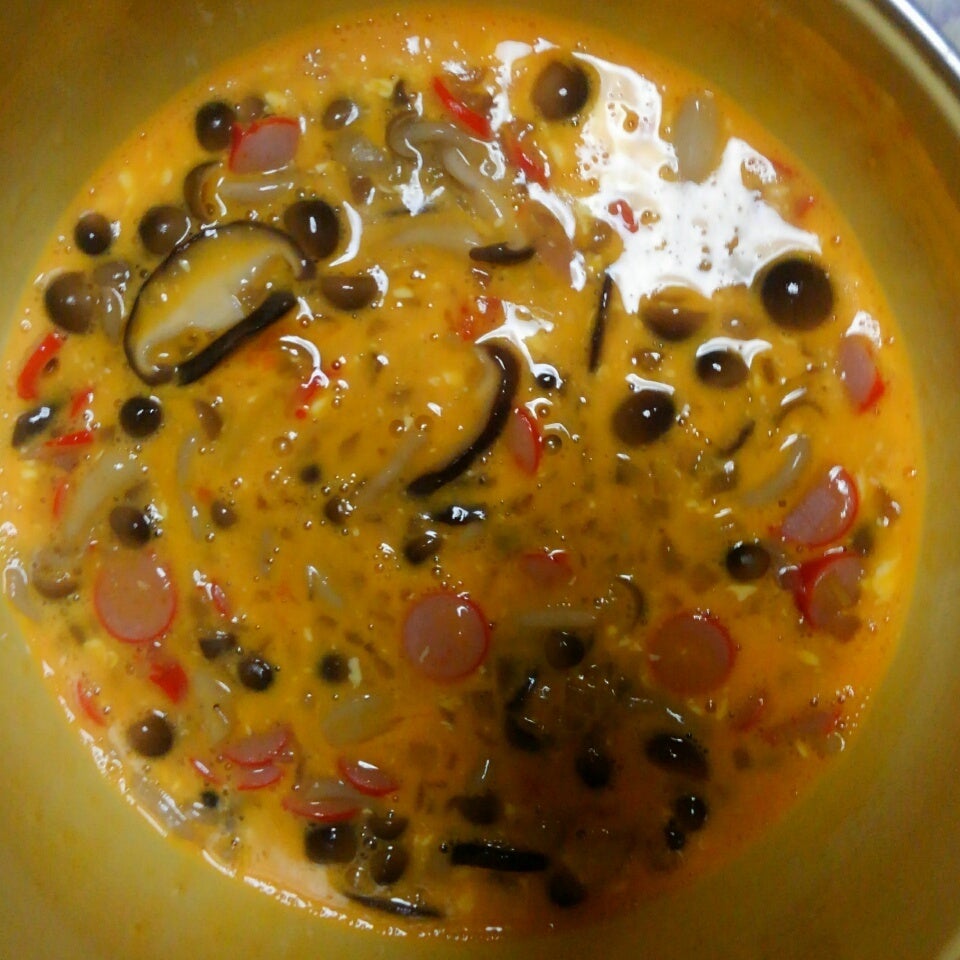 卵に、炒めた具材を入れ、混ぜる。