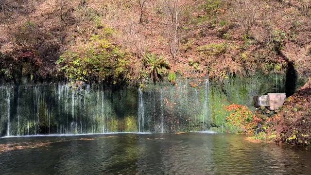 白糸の滝〜車中より浅間山