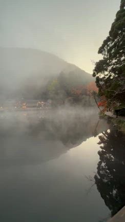 朝霧の金鱗湖
