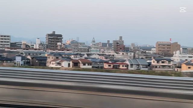 新幹線から着陸の飛行機が見えた。