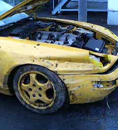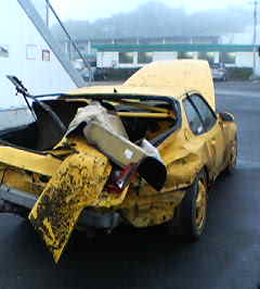 死亡事故現場並みです。 原因はウェットでのパワーオーバーからガードレールへ
