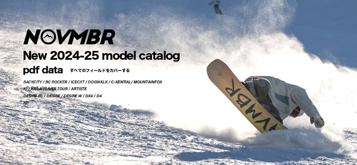 2024-25 NEW MODEL CATALOG – NOVEMBER SNOWMATERIALあらゆるスタイルに対応するために5つのカテゴリーに分けられたNOVEMBER SNOWMATERIAL。www.novembermfg.com