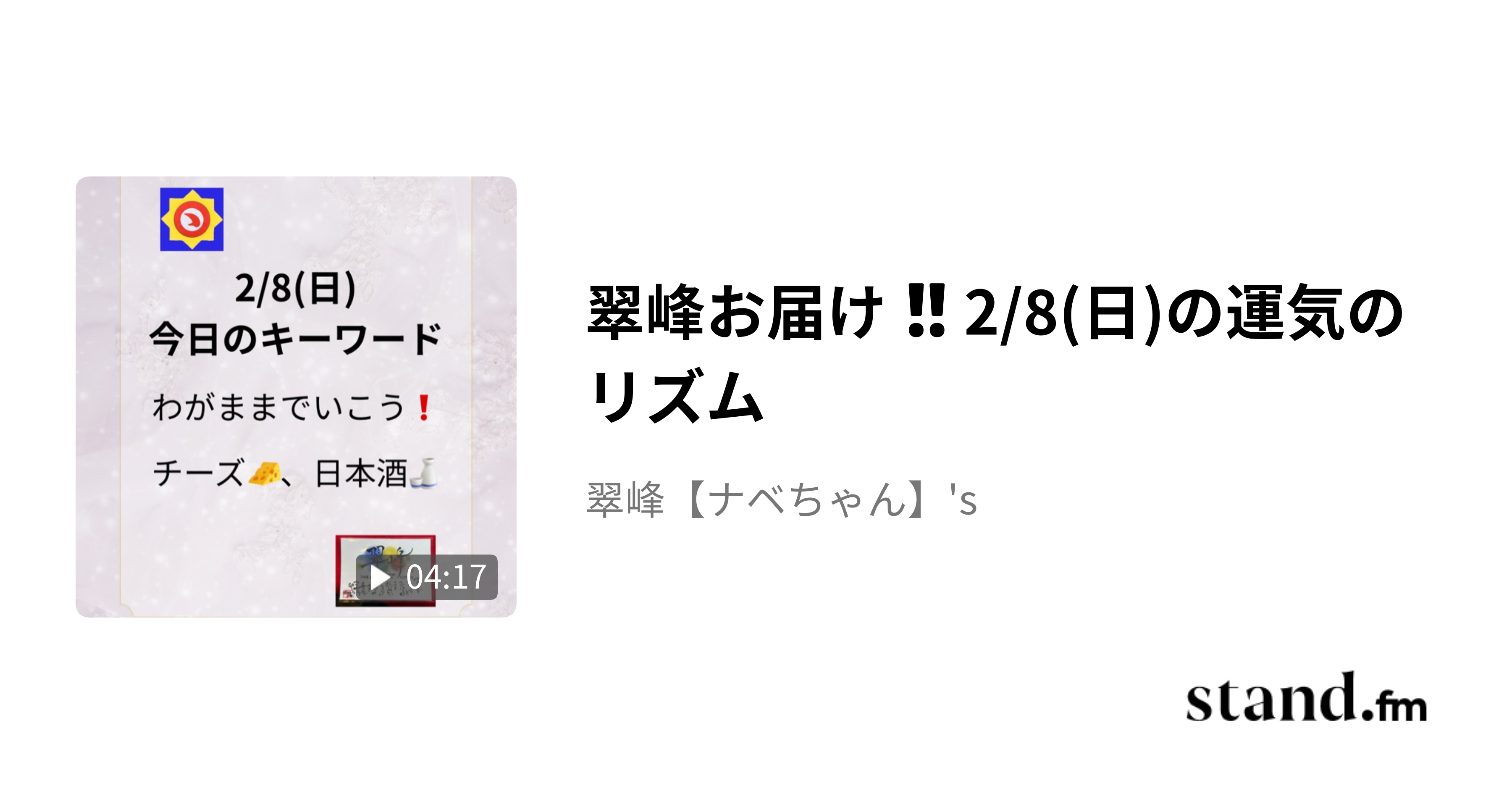 2/8(日)の運気のリズムをお伝えいたします(ちなみに毎日の運気のリズムは9日周期)。何かしらの参考になれば幸いです。その前に、