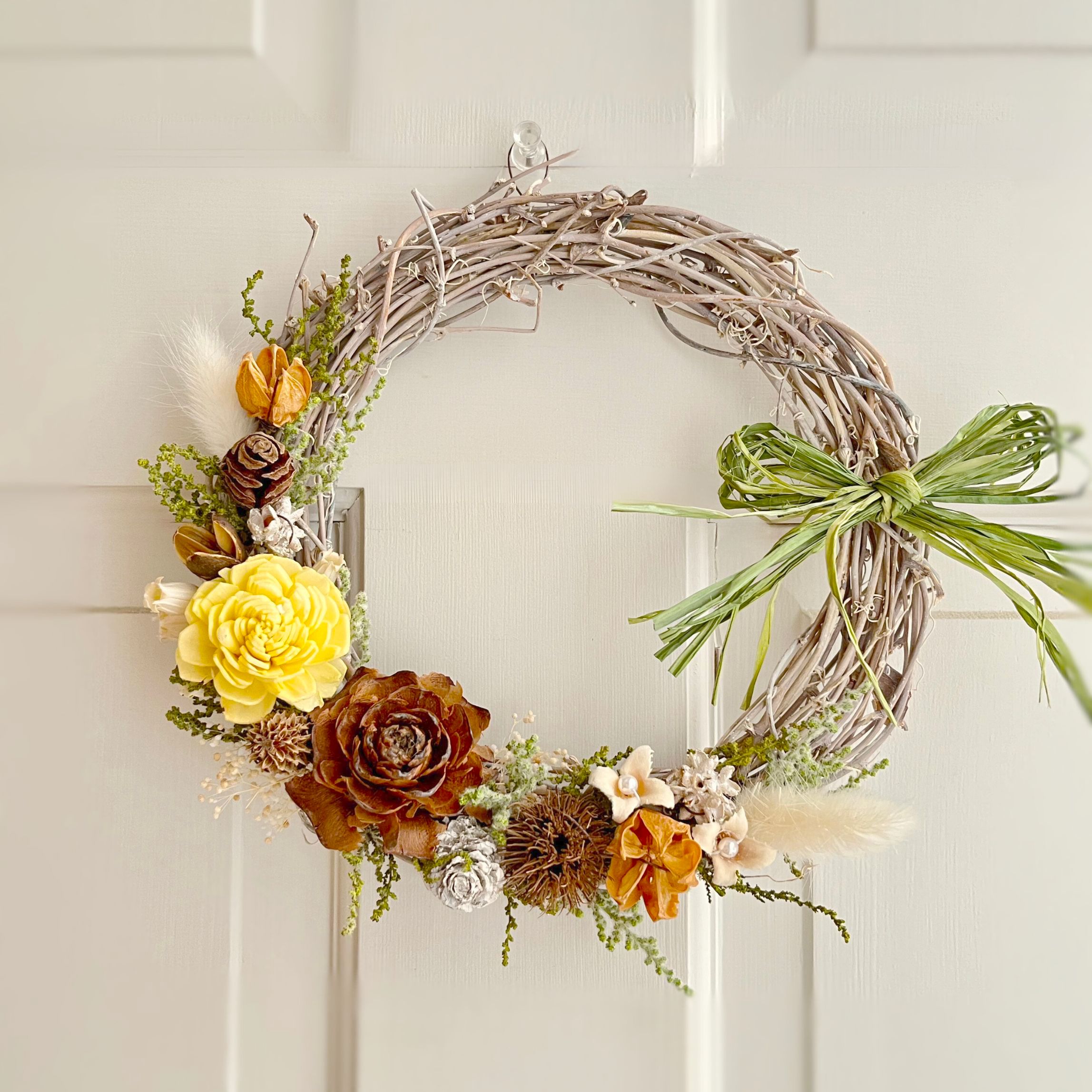 春から夏に飾れる手軽なリースをトロッケンクランツの技法で作ります。お気軽にご参加ください。