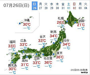 【各地で厳しい暑さ 猛暑日地点続出か】 tenki.jp/forecaster/dia… 26日も、各地で厳しい暑さ。最高気温は昨日と同じか高い所がほとんどで、猛暑日地点は更に増えそう。東京.. pic.twitter.com/7DAyyAyQJu