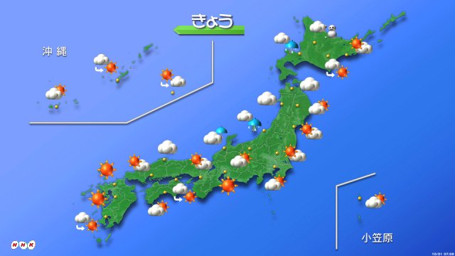 上空に寒気を伴った気圧の谷が北日本を通過する見込みで、東北の日本海側と北陸はところどころで雨が降りそうです。太平洋側の各地と九州は日中は晴れて行楽日和の所が多くなる見込みです。(31日 6:05 更新) pic.twitter.com/7SP8q5WkdQ