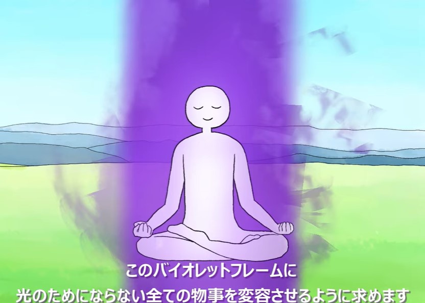 3.ソースからの明るい紫の炎であるバイオレットフレームの筒を、瞑想中から瞑想後にかけて自分の周囲に立ち上げます。このバイオレットフレームに、光のためにならない全ての物事を変容させるように求めます。