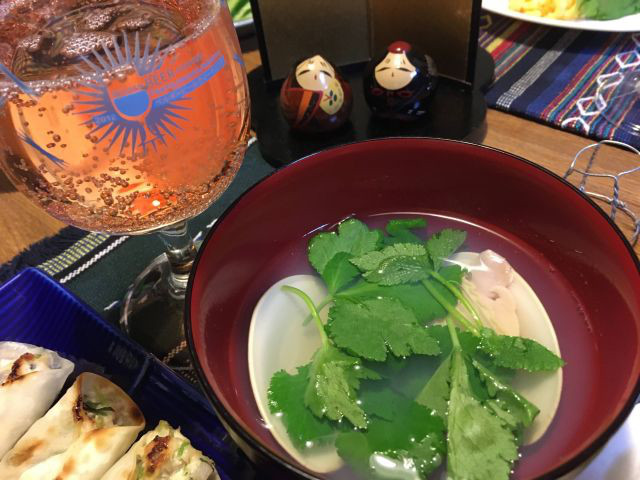 桃の節句首都圏の非常事態宣言は継続しそうな雰囲気ですねそんな日の朝はワンタンスープで始まるレカちゃん弁当ばななも付いたスペシャル弁当鶏のパン粉焼椎茸、ポテサラ、人参シリシリ、ゆで卵夜は棒餃子もちろん前座でメインは桃の節句レカちゃんスペシャルドーナツ寿司ピンクのお酒こんな感じでもちろん、潮汁今宵はホンビノスではなくハマグリですって