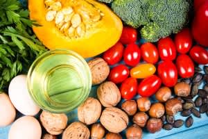 小麦胚芽油、ひまわり油、ベニバナ油、大豆油といった植物油。さらに、ピーナッツ・ヘーゼルナッツ・アーモンドなどのナッツ類、種子類、ほうれん草、ブロッコリーに豊富に含まれています。