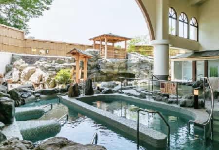 豊富な湯量と優れた成分から療養泉とみなされ、なめらかで優しい美肌の湯とも言われる。さまざまな湯船を備える露天風呂や、体の芯からケアする高濃度炭酸泉が人気で、エステや手もみ処など癒しも充実。