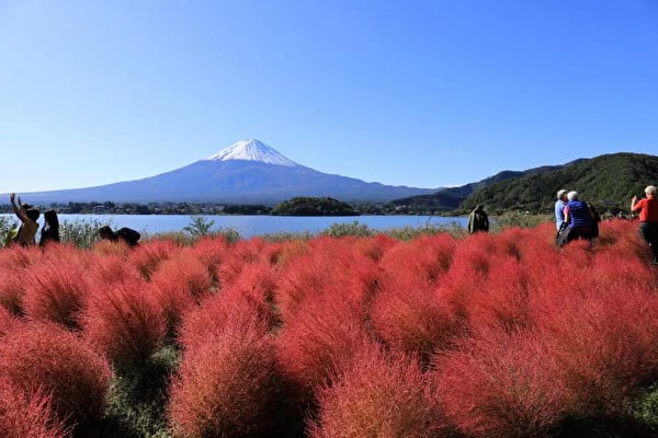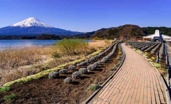 河口湖北岸にある大石公園は、富士山と河口湖の絶景が楽しめる場所として毎年多くの人が訪れる観光スポット。富士山だけでなく、初夏のラベンダーや秋のコキアなど、四季折々きれいな花が咲く花の名所。