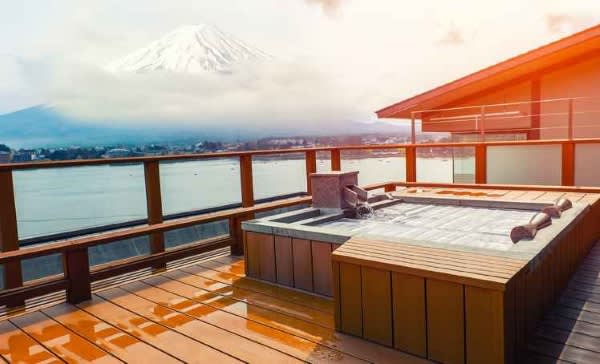 富士山の美しい稜線を眺めつつ、湯に浸かる