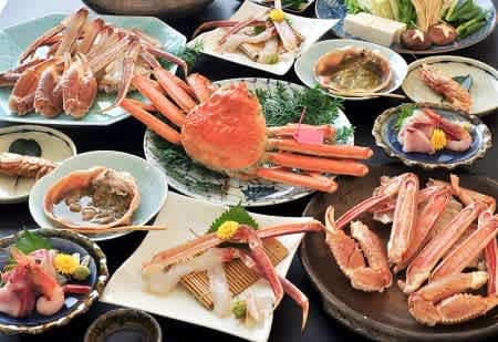秋冬は、宿名物のカニ料理目当ての人々が集う。